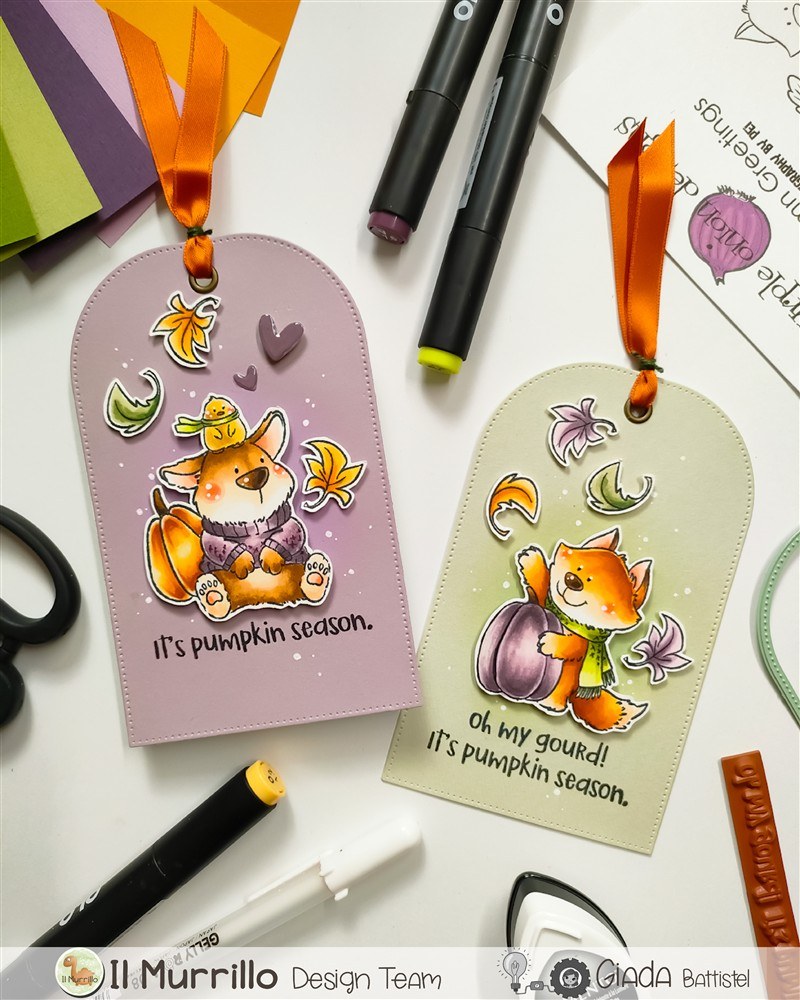 Finalmente è arrivato l’autunno e quindi per questo mese vi propongo due tag a tema con gli animaletti del set Autumn Greetings di Purple Onion Designs.