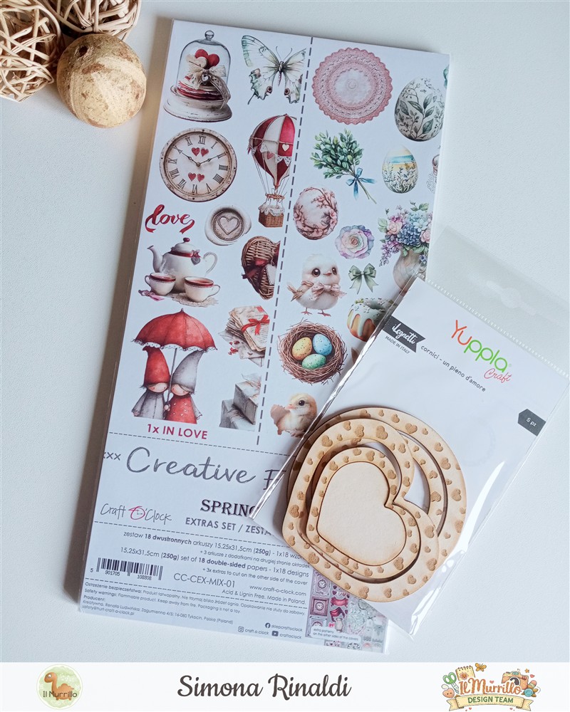Prodotti utilizzati: Ritagliabili Craft o’clock “Spring in love” – Legnetti cornici “Un pieno d’amore” Yupplacraft – Legnetti “Ricordi” Yupplacraft