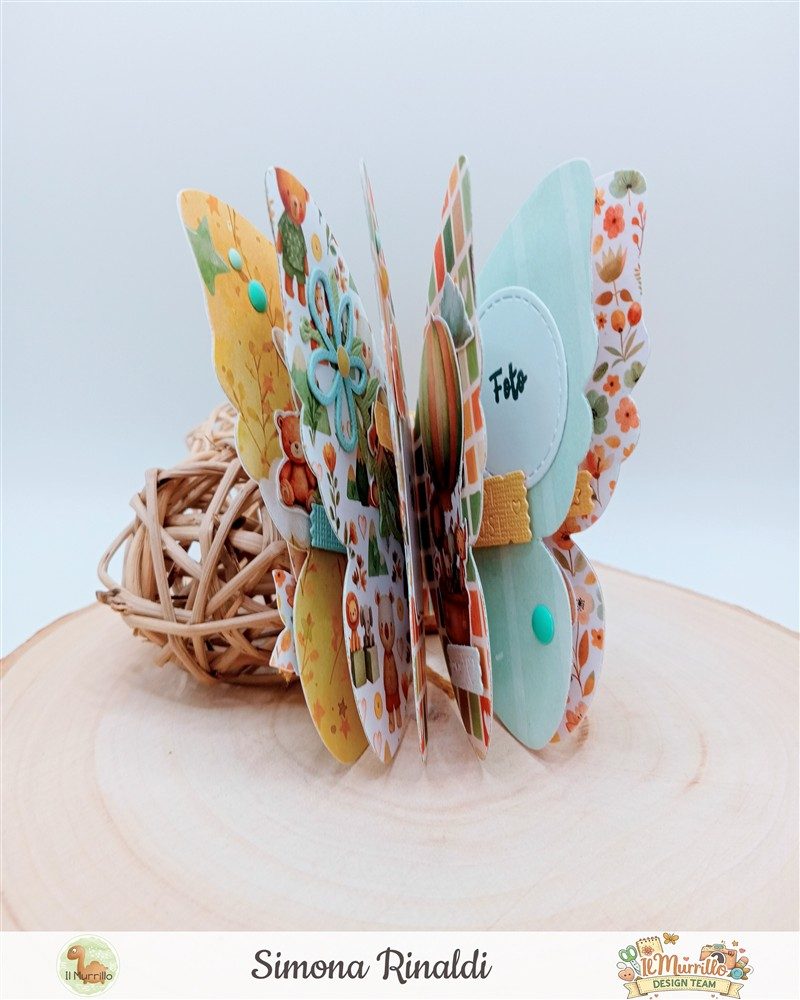 Prodotti utilizzati: Fustella “Farfalla e fiori” La Coppia Creativa – Carte “Lunibloom” Ciao Bella – Ritagliabili “Lunibloom” Ciao Bella – Stencil “Farfalla” La coppia Creativa – Fustella “Mini album ticket” La Coppia Creativa – Enamel dots