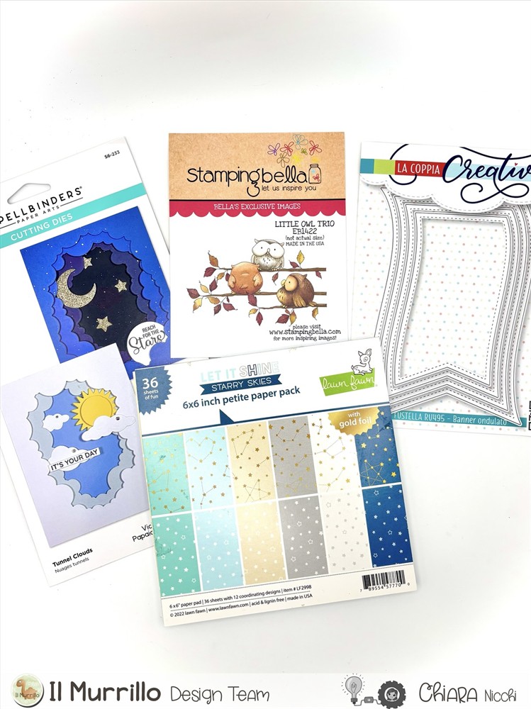 Materiali utilizzati: Owl trioBanner ondulatoTunnel cloudsLET IT SHINE STARRY SKIES COLLECTION PACK
