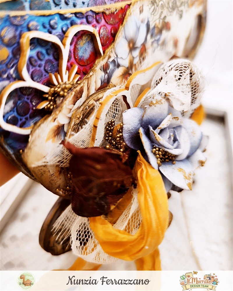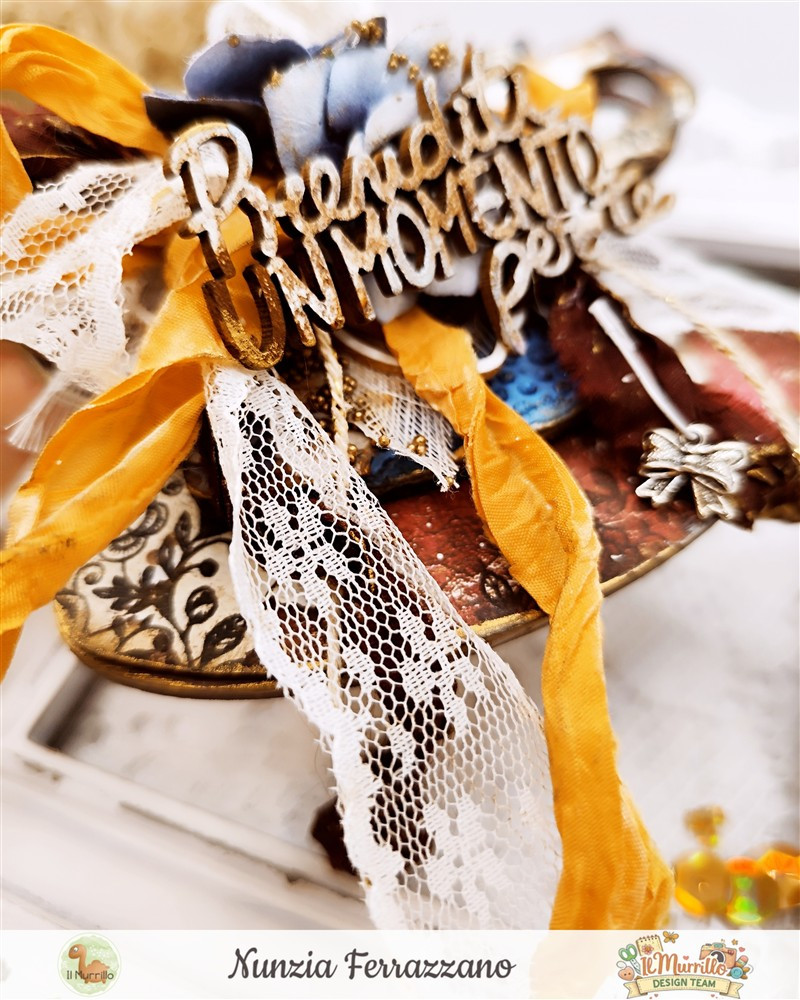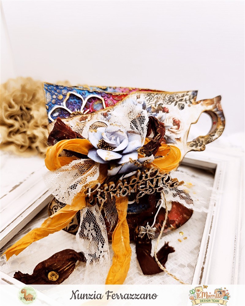 Materiali Utilizzati: harmony cup Stamperiastencil set n.46 Tim Holtzpaper pad Mindfulness Time Craft o’ clock timbro clearΒ  Jolie Dentelles Florileges Design –Β  fiori chipboard ABstudiolegnetti Prenditi cura di te YupplaCraftnastri Old Fashion Ribbonnastro pizzo bianco fiori Prima MarketingΒ twine ivory&goldspilletta biancacharm fiocco Zibulinegesso bianco Finnabairtexture paste Tim Holtzmicro glaze –Β  cere FinnabairΒ  – distress spray stains Tim Holtzdistress oxide ground espresso Tim HoltzΒ  – blending toolpolvere embossing whiteclear away trayheat tool Rangerpistola embossing Sizzixpistola colla a caldopennelli e spatole