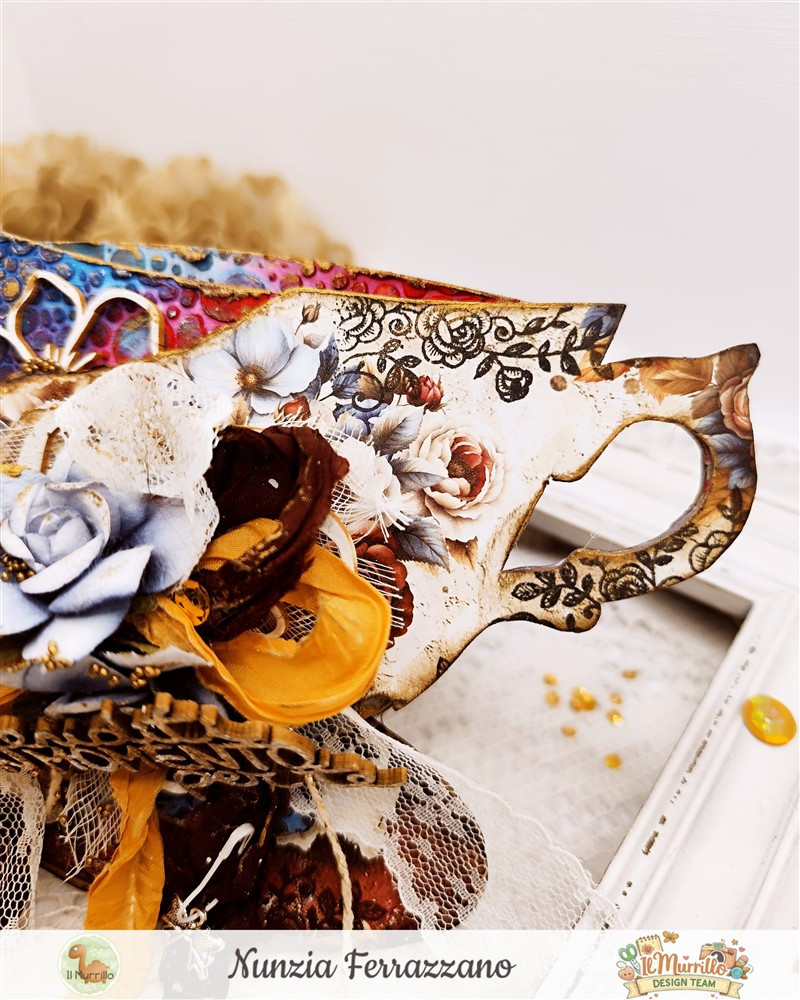 In quest’occasione ho avuto la possibilitΓ  di lavorare con la bellissima tazzina di Stamperia e, nel desiderio di creare un’armonia autentica tra i materiali, mi Γ¨ tornata alla mente la magnifica collezione Mindfulness Time di Craft O’Clock β€” in particolare il foglio con il meraviglioso orologio, simbolo del tempo che scorre e che impariamo a dedicarci.