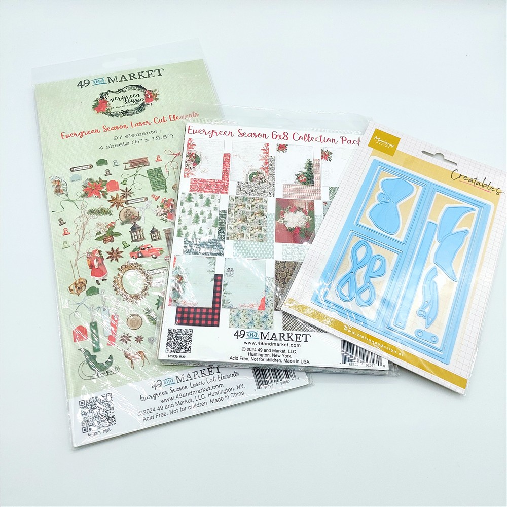 Ben trovate amiche creative, il momento più bello dell’anno sta per arrivare e sicuramente starete tutte pensando a qualche bel progettino da realizzare. Io ho avuto un colpo di fulmine con questa fustella della marianne design che ci permette di realizzare una finestra che si apre, e Evergreen season della 49 and market mi sembravano delle carte perfette da poterci abbinare, soprattutto insieme ai die cut  della stessa collezione.
