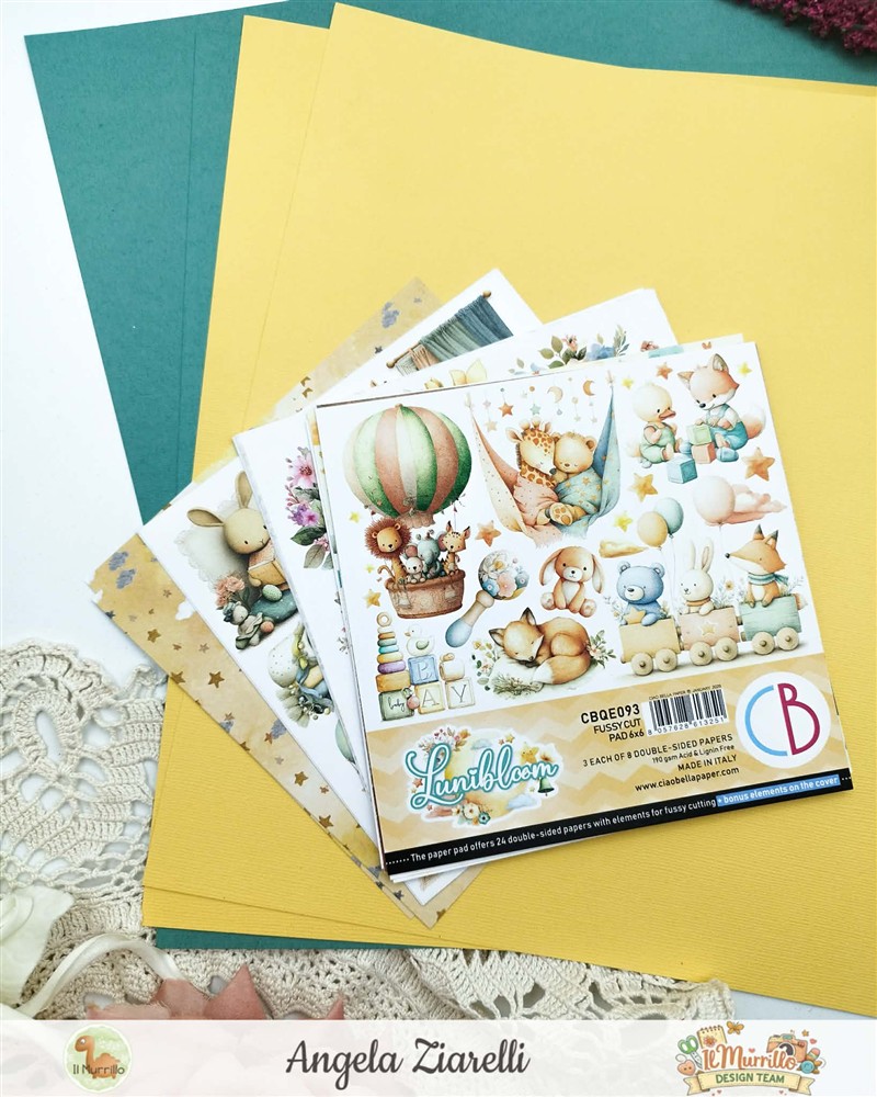 L’ispirazione è arrivata osservando le bellissime carte Lunibloom di Ciao Bella Paper fussy cut, una linea delicata, sognante e perfetta per progetti dedicati ai momenti più importanti della vita di un bambino o di una bambina, perché, si, sono carte unisex adatte sia a un lui che a una lei.